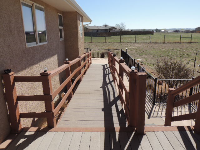 SOLD!! Immaculate, fully handicap accessible and VA compliant for total wheel chair access throughout the main level of the home. Wheel chair lift in the garage and wide interior doors for easy access. Hardwood flooring throughout the home with tile in the bathrooms and laundry room. Open floor plan 3 bedroom 2 bath. The 3/4 bath with walk in shower has a large wide entrance handicap access master bathroom with walk in closet off of the master bedroom and a full bathroom in a hall between the other two bedrooms. The outside is fully landscaped with an irrigation drip system to all the flower beds and trees. The unfinished basement offers an opportunity to design it your way. The plumbing is installed and ready for another bathroom or plans for plumbing as needed. Sump pump is installed if ever needed. Seller is in the process of scheduling a Radon Test and will have Radon mitigation work done if needed. Seller is also scheduling a septic pump and inspection to be performed on the system as well. This beautiful home has a large back yard on a 61,420 sq. ft., (1.41 acre) lot that is ready for your dream shop or storage shed. Approximately 3 miles to Pueblo Reservoir!